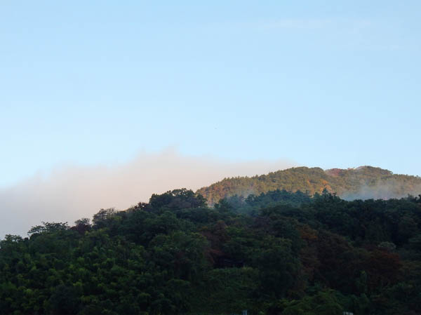 ここまでくればあとはジグザグに一息で山頂だ。道の周りは明るい黄色に染まった森が続いている。空も近くなる。日本人は『紅葉刈り』などという言葉に表されるように、紅葉を愛でる民族なのだと思う。私自身は新緑の少し前くらいの山が一番いいかな〜などと思っているが、紅葉シーズンになるとどっと観光地へ繰り出す人が増える。