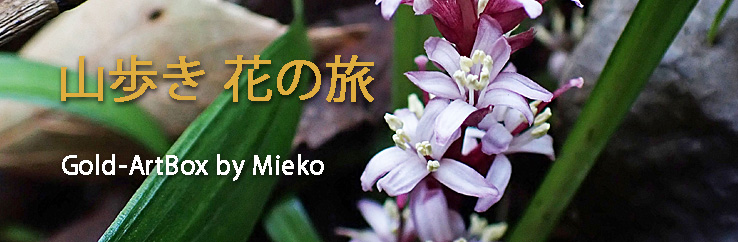 さらに進むとヤブランの実が黒く光っている。そして、見たかった花。キチジョウソウ。一見ただの葉の茂りに見えるところだが、そっと葉を分けると咲いている。白と赤紫が隣り合ったような花。道端の茂りを覗き込みながら進むと、まだ蕾もあり、そしてさらに探すと赤い実も見える。私は大喜びでわぁ〜、綺麗、などとはしゃいでしまう。