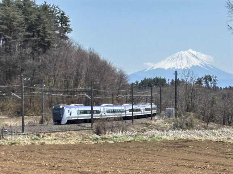 北陸新幹線の大宮付近、走行中の新幹線の車内から見た景色です。真っ赤に染まった夕焼け雲、そして遠く富士山が見えました 2025.11.2