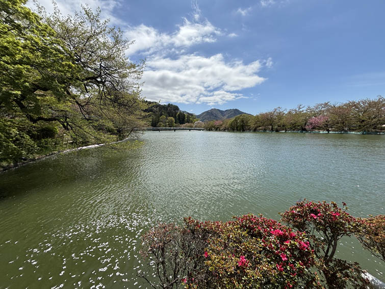 農業用の溜池として造られたとは思えない美しさ。この景観を求めて海外からも多くの人が足を運んできています。あと1週間後ぐらいが紅葉のみごろかもしれません。