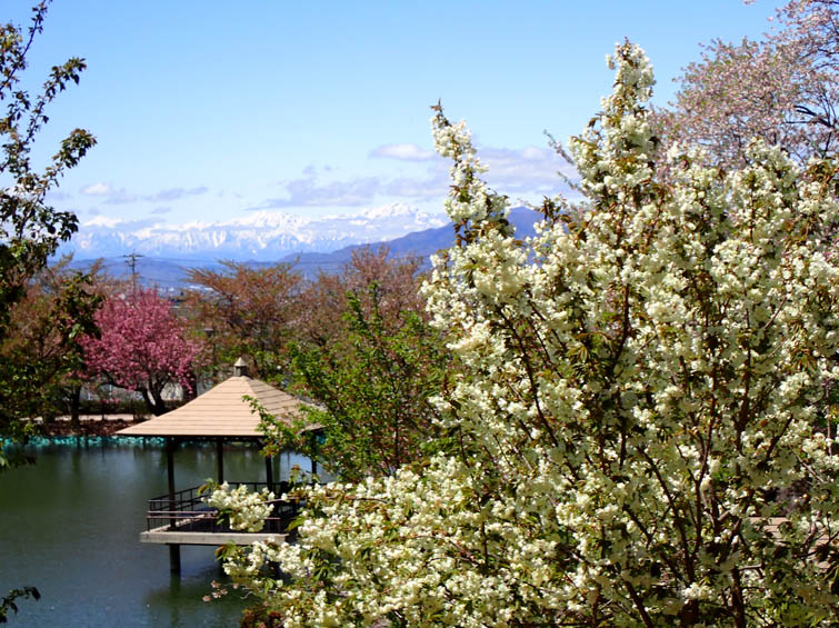 6月1日は上高地でウエストン祭が開かれ、北アルプスも登山シーズンが始まったと今朝の新聞に書かれていました。長野市の茶臼山展望台からの北アルプスです。霞んでいましたが遮る雲はありませんでした。まだ雪がたくさん残っています。 2025.6.2