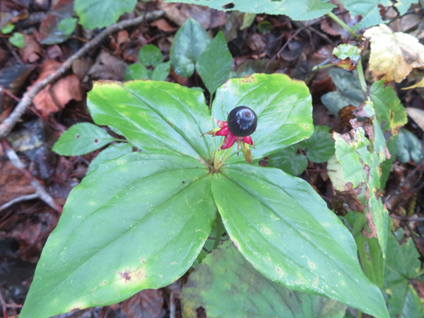 今年の春、信越県境でシラネアオイが咲く頃、裏山大峰山に葉がそれに似ている植物を見つけました。シラネアオイは初夏には実になってしまいますが、これはずーっと花を咲かせる気配がありませんでした。ようやくこの時期固い蕾を破って小さな花を咲かせました。 2020.9.2