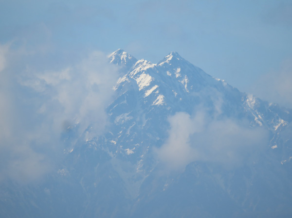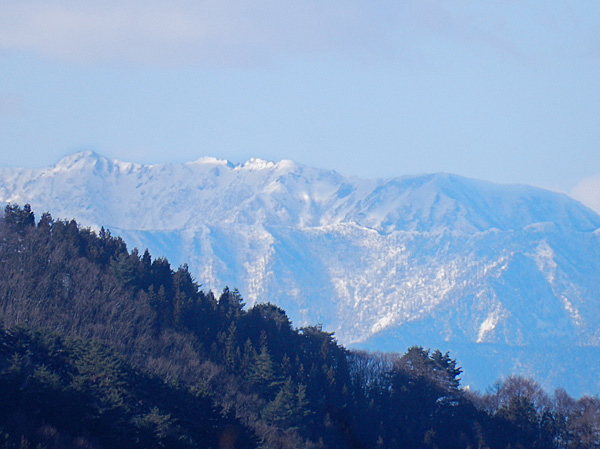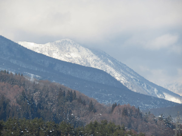 冠雪した山々は光線の当たり方によっては、雄大な海外の山々みたい。憧れの海外旅行! いつ行けるかな。