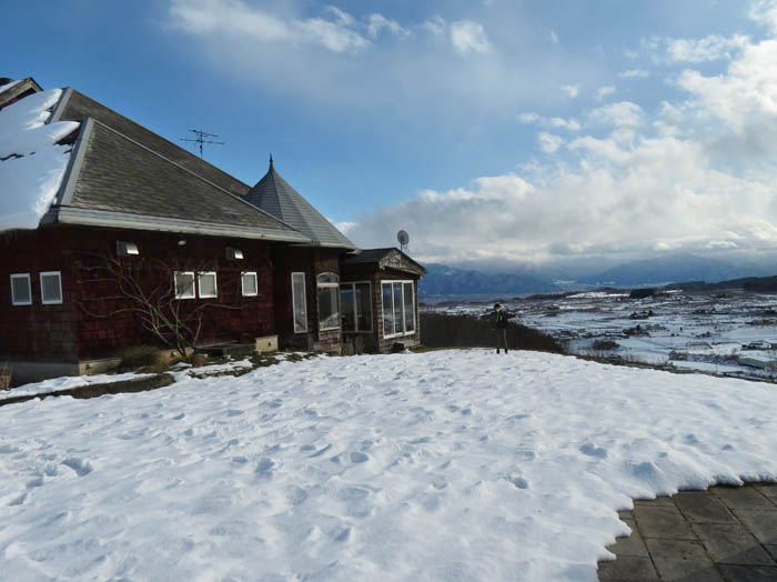 今朝は雪が少し積もっていました。気象台のデータでは0となっていましたが、久しぶりに裏山が白くなりました。午前中には消えてしまったので、雪景色を見たいという三浦半島に住む孫たち家族と長野市の北隣、飯綱町へ行ってみました。 2023.1.2