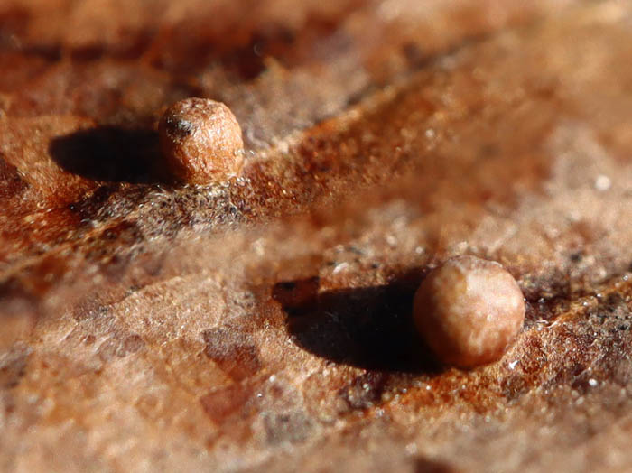 再び髻山へ。定点観察をしてきたホコリさん。地味になり見つけるのが難しくなっています。撮影している場所は斜面。何度も踏み込んでいるので滑りやすくなってしまいました。接写撮影は難しい! 2022.12.9