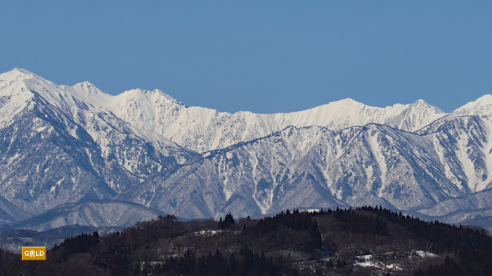 快晴のお天気。長野市茶臼山から北アルプスを展望。南から北へと載せています。まさに本州の中央を縦に分ける白い壁! 2024.3.11