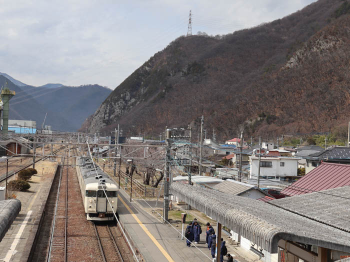 下山後は中腹の展望スポットへ。下を走る電車とバックに上信の山々、両方を入れて撮りたかったのですが、電車はたいへん小さくてよくわかりません。