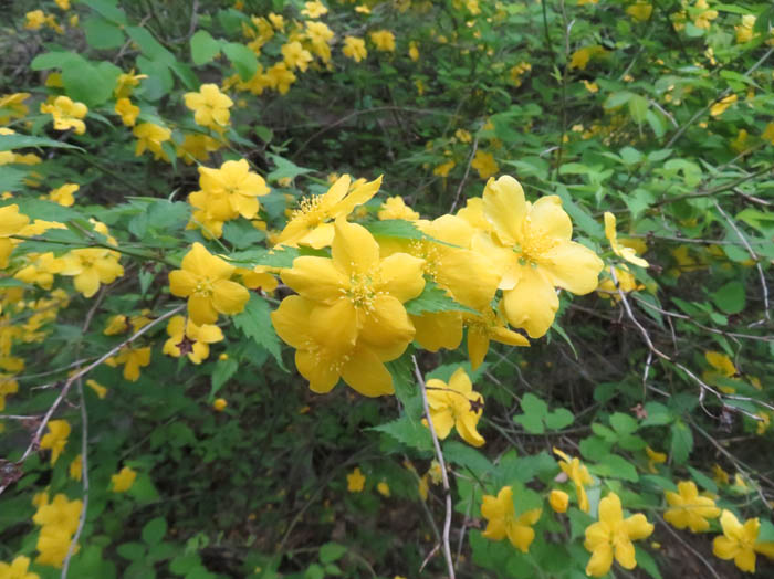 地附山はあちこちで黄色いヤマブキが咲いていました。花をよく見ると種類が違うことが分かります。