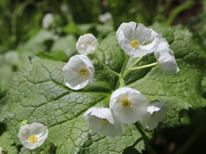 訪れるのが少し遅かったようです。葉が大きくなり白い花が目立たない。その年の降雪量や気温によって咲く時期が違い、他の花が咲き始める頃そちらも見たいし、ちょうどいい時を狙って行くのは難しい! 2024.4.26