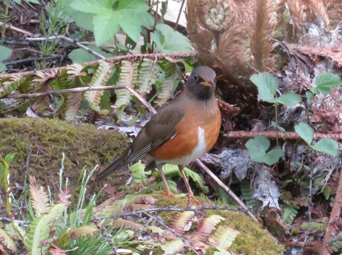 「キュロン、キュロン、ツイー」と三音節で鳴き春の訪れを告げる鳥。ミミズなどを餌にするツグミの仲間だそうです。地面を突いていることが多いので、撮影もしやすいのかな。お腹は赤いけれど、真ん中は白いんだ。