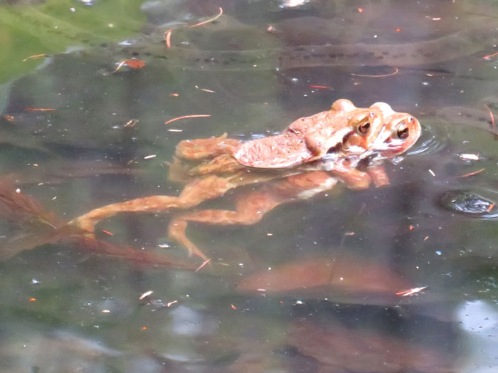 繁殖の時期です。雌の数が雄に比べると極端に少なく、雌の取り合いになり激しい奪い合いをするそうです。それがガマ合戦。そのガマ合戦はまだ見たことはありません。