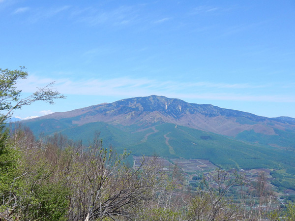 群馬県村上山の山頂から雄大な四阿山を見た。「ねぇ、覚えている?」「忘れちゃったなぁ」。「降りてきたら、ソフトクリームの売店が閉まっちゃってた」、そういうことは覚えているものらしい。四阿山に登ったのは、まだ若かった頃。