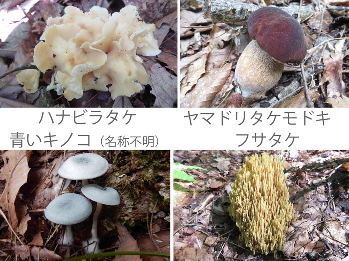 秋雨が長引けばキノコがたくさん顔を出す。いろいろな色や形のキノコは図鑑で調べても名前がわからないものが多いので、採取はせず、目だけ楽しませてもらうことにしている。