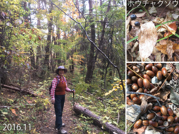 また、秋といえばキノコ。この季節になると遊歩道以外の立ち入りは禁止になる。キノコは毒の強いものが多いので見るだけだけれど、様々な色や形のものがあって面白い。傘の部分が穴だらけで虫に喰われているものも多いが、虫が食べているから食用となるとは限らないのだそうだ。やっぱり素人は見るだけでよしとしよう。