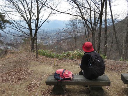 朝は風が冷たかったけれど、ちょうどお日様が顔を出し、ポカポカと温かい。善光寺平を見下ろしながらおやつを食べる最高に優雅な気分。