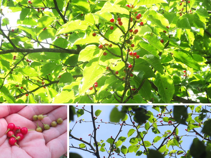 さらにイケさんは、アオハダの実がたくさん赤く光っている様子を指差して教えてくれる。高いところに光っているので、見上げる首が痛くなるようだ。「ウラジロも、アズキナシも赤い実だよ。知ってるかい」とニコニコ。いつも足元の花ばかり見て歩いているので、高い梢の様子はあまり見ていない。新しい視界が開くことが嬉しい。すぐそばでミンミンゼミが鳴いている。