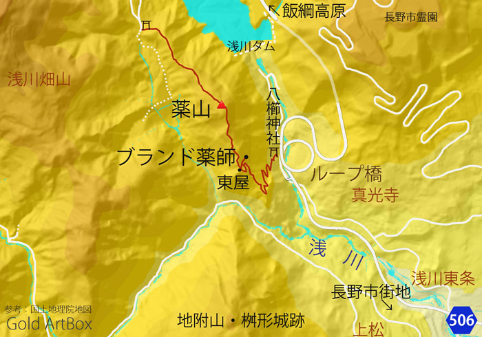 薬山と言っても知る人はあまりないかもしれない。現に私たちも今年になって初めて聞いた(長野県人になって8年)。中腹にあるブランド薬師は懸崖造りで、下から見上げると崖の途中に張り出しているような恐ろしげな建物だ。ブランド薬師は以前から通るたびに見上げていたのだが、そこが薬山という山の中腹とは知らなかった。