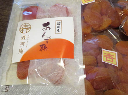今回の目的の一つは干し杏を買うこと。『花より団子』ってこのことか・・・。たくさん売っているオレンジ色の干し杏は地元のものではないそうだ。森の杏で作るととてもたくさんの手間がかかり、黒っぽくなるそうだ。そして高価。オレンジ色の少し小さい干し杏はトルコ産だって。前に買ったのはトルコ産だったんだ、きっと。国産は高価だから一袋だけで我慢、トルコ産も合わせてゲット。 さぁこの後は山歩きだ。どこかでお昼を食べて行こう。