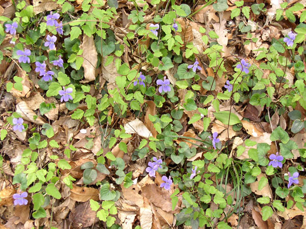 いくつかの花の群落の間にひっそりと咲く、ヒトリシズカ、ニオイタチツボスミレなどが趣を添える。当時住んでいた神奈川にもニオイタチツボスミレの花が咲いていた。濃い紫の花はほのかに香りをまとっていて、見つけると嬉しくなって鼻を近づけたものだ。