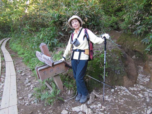 天神尾根コースは、高度差は少ないけれど距離は長い。途中トラバース気味の鎖場もあるが、崖側には灌木が茂っているので、あまり怖くはない。気をつけて進む。