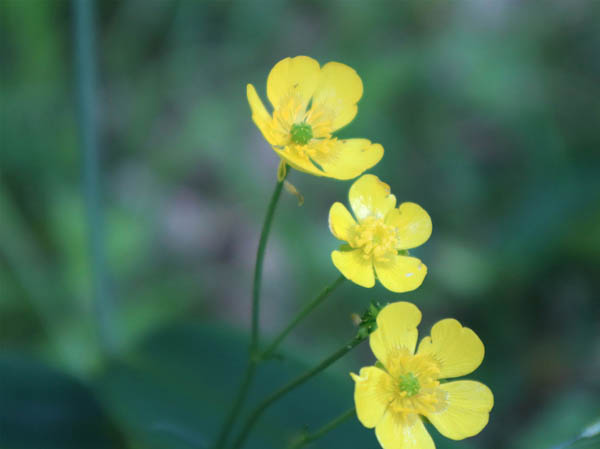 柵で囲われたお花畑を眺めた後、駐車場脇に建つグリーンロッジの前を通って四阿へ向かう。緩やかな道を登っていく両側にもレンゲツツジ、ミツバツツジの木はあるが、花は終わりだ。草原にはキンポウゲが群落になり、光沢のある花びらが光を反射している。キンポウゲは別名ウマノアシガタと言う。葉の形から名付けられたというが、そうかなぁ。似ているかなぁ。