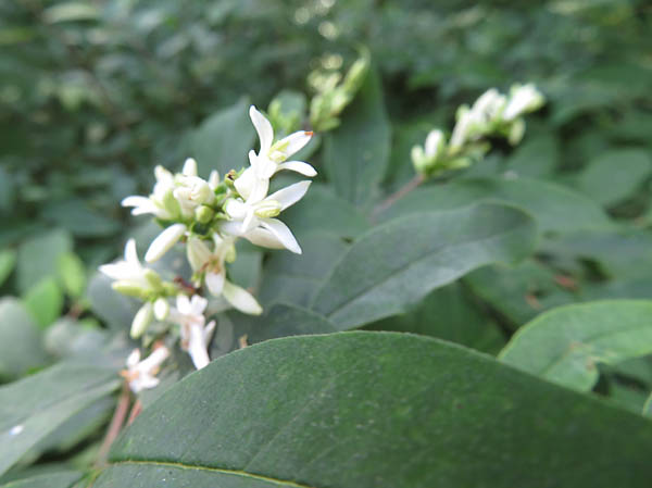 私たちがヒメザゼンソウを探して下ばかり見て歩いている間に、森はどんどん夏に衣替えしている。6月に来た時は満開だったサワフタギやヤブデマリの白い花はもう散っている。蕾だったイボタノキの花が開き始めている。