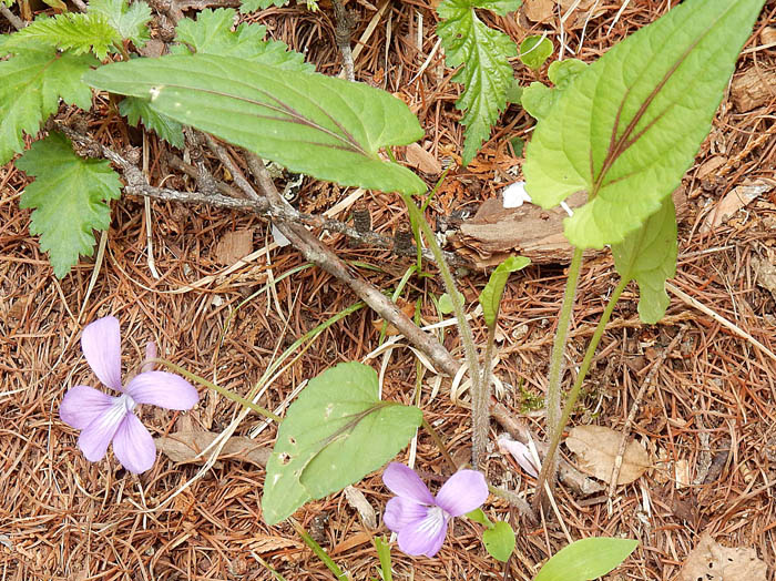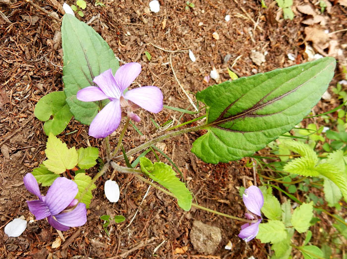 花が大きく葉に赤い筋の入ったチシオスミレと、そっくりなサクラスミレが場所を分けて咲いている。フデリンドウとワスレナグサの小さなブルーも忘れがたい。