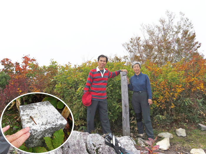 イワナシの葉が緑に茂り、ツバメオモトやゴゼンタチバナ、マイヅルソウなどの葉が黄色く茶色く重なっている道を一息登ると、山頂だった。
