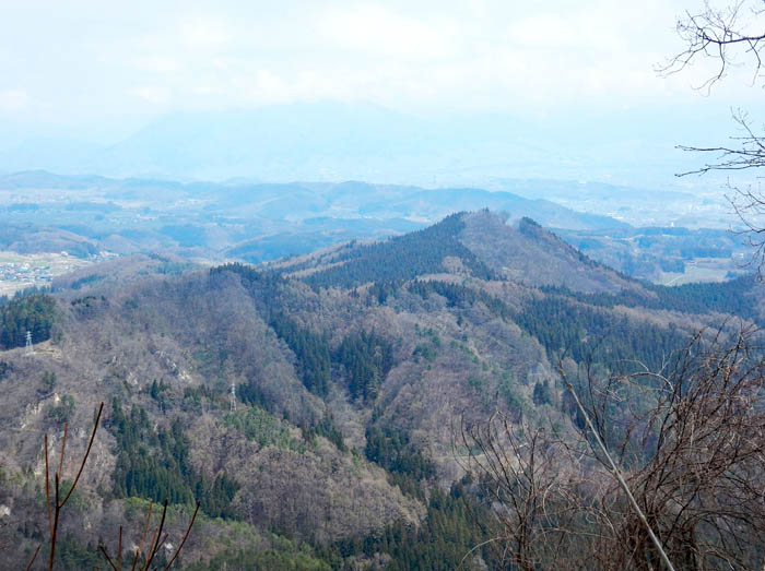 日差しが強くなってきたのはありがたいが、相変わらず風は強い。谷の木々が大きく揺れている。杉の梢は三角坊主みたいになって、それがくっついたり離れたり、楽しそう。