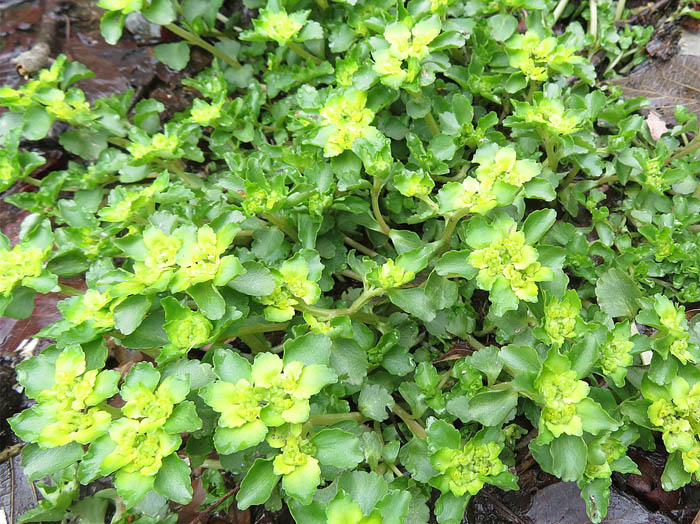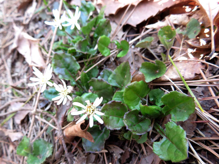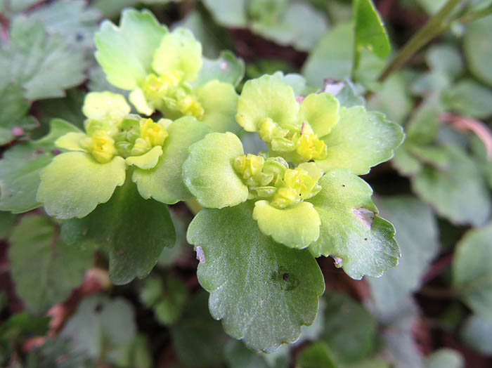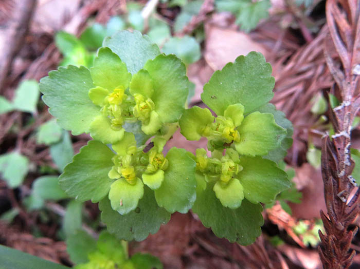 八方峠に到着。峠とは言うけれど、急な沢まで降りて登り返す。沢のほとりにネコノメソウが咲き始めていた。小さな1〜2ミリの花の中を覗き込んで「おしべが4本だから、これはネコノメソウ」、やっと覚えた見分け法。まだ開いている花はほとんどないので、探し回って見つけた。小さな、小さなネコノメソウ属にはなぜか目を引かれる。見つけるとつい足を止めて花をのぞき込む私を、夫は諦め顔で待つ。