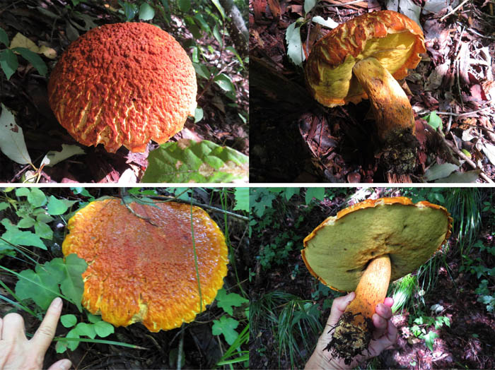 大きなアカヤマドリを見つけたので、留守番の夫に見せてあげようと袋に入れて持って歩いていた。食べられるかどうかの判定は難しいので見るだけかな・・・と思っていたが、帰り道地附山公園近くでイケさんに会い、「これはアカヤマドリだよ。まだ傘裏が黄色いから食べられるよ」と、食べ方も併せて教えてもらった。