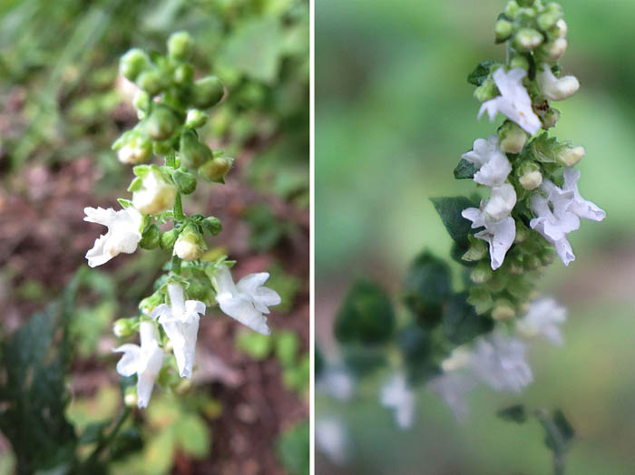 今日はキノコの収穫は諦めて、森の空気を楽しもう。バードラインの旧道を歩き始めたら、たくさんのナギナタコウジュにぼこぼことコブがついている。イケさんは前から気になっていたと、「これは花かい」と聞く。私は虫こぶだと思っていたが、調べたことはなかった。それにしてもどの株にも見事にコブコブがついている。「ナギナタコウジュに見えるけれど・・・」と、呟きながら降っていくと、花穂がでている株が増えてきた。「やっぱりこれはナギナタコウジュだ」と私。家に帰って調べたら、虫こぶの正体はナギナタコウジュハチヂミフシという虫らしい。それにしても物凄い繁殖だ。本来の花穂が見えないくらい虫こぶに覆われている。