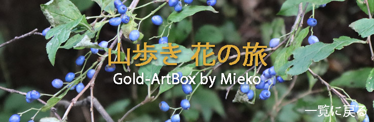 わぁ〜見て、思わず声が出る。目の前の低木にびっしりとブルーの実がついている。サワフタギだ。山の人は「瑠璃実(るりみ)の牛殺し」と呼ぶそうだ。枝がしなやかで丈夫だから牛の鼻輪に使われたという。陽の光を受け明るいブルーに輝く実、木陰に隠れて深いブルーを湛(たた)える実、見飽きない美しさだ。