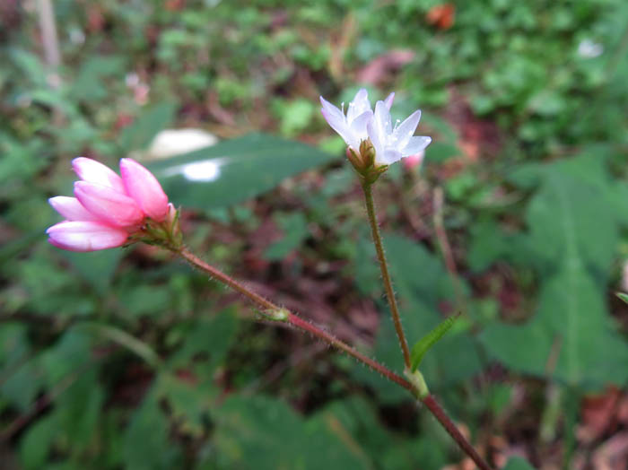 帰りは鏡池入り口のバス停までのんびり歩いた。ミゾソバか、ママコノシリヌグイか、アキノウナギツカミか、ちょっと見ただけではわからない金平糖の様な小さな花が水の流れを感じるところにたくさん咲いている。同じ花かと思って見ていたけれど、葉の形が違うものがある。次に来た時にはすぐ区別がつくかな。また、宿題をもらったかもしれない。