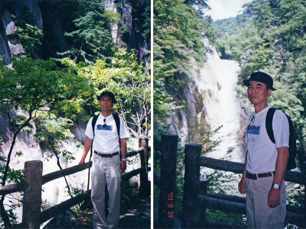 渓谷の脇の遊歩道を歩いて仙娥滝を目指す。名所らしいけれど、あまり人に会わないのがいい。日差しが強く眩しい光の向こうに滝は流れ落ちている。光を反射して水が踊っているようだ。