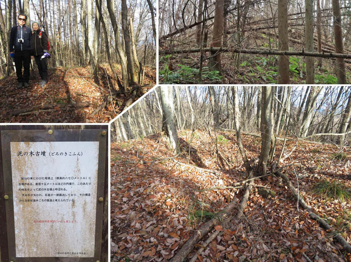 馬洗いの池と並んで「泥の木古墳」の看板も立っている。しかし見上げると縦横に倒木が重なり合っていて、これまでとても登ってみる気にはなれなかった。