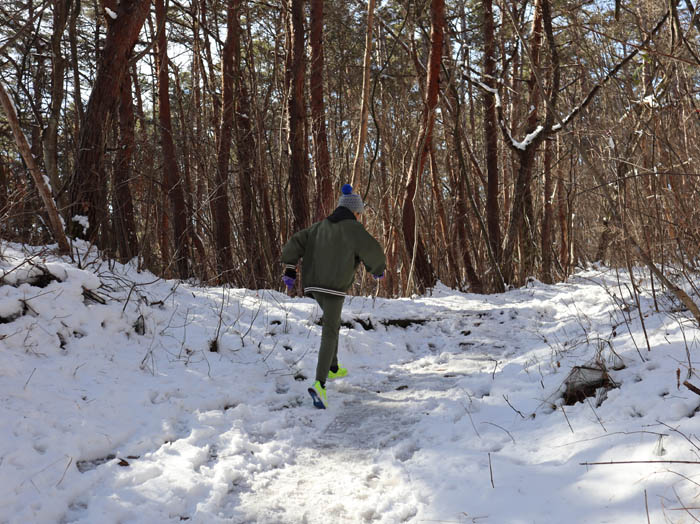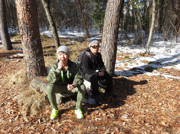 登山靴も持っていない孫はスニーカー履きだから案じていたが、びっくりするほどうまく雪の上を歩いていく。陸上のトレーニングをしていて体にバネがあるのだろう、まるで鹿のように雪の上を跳ねていく。