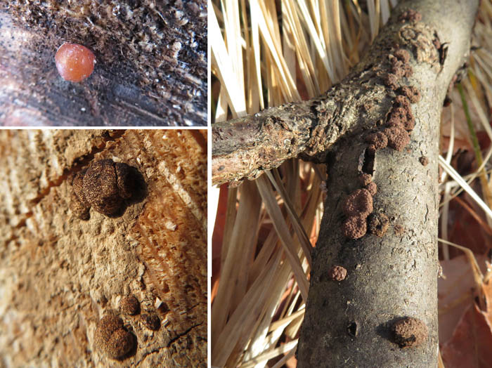 暗いところにぷつぷつと体を寄せ合っているヌカホコリ、もう数ヶ月も同じところにいるハート型のアカハシラホコリ、そしてマメホコリ、小さなハチノスケホコリもオレンジ色に光っている。粘菌たちは雪の下でもしぶとく生き抜いているようだ。