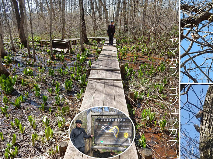 この静けさと水芭蕉の美しさを見せたいと、翌2017年やってきた友人を案内したら、観光バスが停まっていて驚いた。ツアーの人たちは次々とバスに乗るところだったので、私たちが園内に入る時にはバスは出発して行った。幸い静かになった森を楽しむことができたが、地元の人が出店を出していて、数台停まっていた車は遠方からのものも多かった。