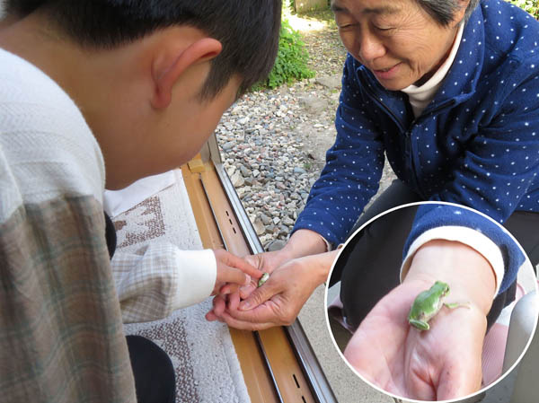 これまた余談になるが、カエルがとても苦手な友人がいる。それを知っている孫が「この大きなカエルの写真を撮って送ってあげたら」とニヤリ。「そんなことをしたら卒倒しちゃうよ」などとジョークを言いながら、池を見る。カエルは大好きな人と大嫌いという人に分かれるような気がする。家に遊びに来た友人の子供は庭のアマガエルを興味津々で眺め、そっと触って喜んでいた。