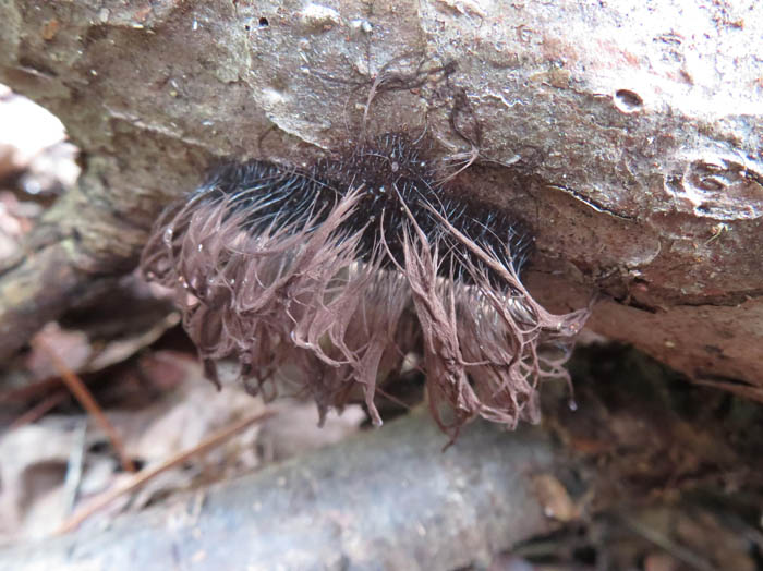 私たちがキノコを見て喜んでいるところにイケさんがやってきた。粘菌の変化を見るために毎日登っているのだと言う。すっかり粘菌博士になってしまった。