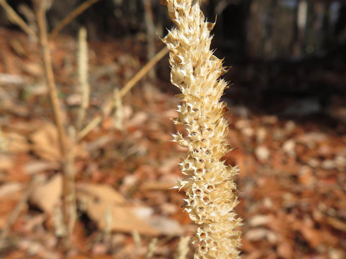 夏でも冬でも毎日のようにこの山を歩く人も多い。かくいう私たちも散歩と言いながら時々歩いているわけだ。花がない季節は寂しいけれど、まだ木の実は頭上で光っているし、冬芽は少しずつ膨らんでいる。雪が積もれば倒れて土に帰っていく草たちもまだ実をつけている。