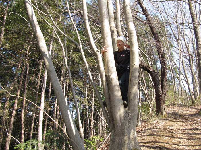 森の中を登っていく。大きな木が茂る森の中は面白い。針葉樹の森は暗いが、すっくと伸びた幹が気持ち良い。落葉樹の森の中は冬も明るく、見通しも良くなる。それぞれの木の枝ぶりを楽しんで歩き、時には木登りもできる。