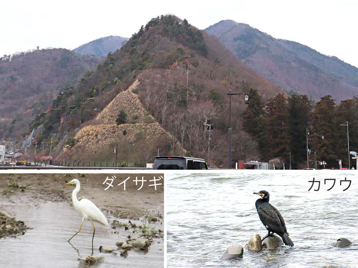 お天気は曇り、次第に晴れるという予報を信じて出かける。午前中の用を済ませてしなの鉄道に乗る。11時45分発で、戸倉まで。戸倉駅から歩いて大正橋を渡る。千曲川の水量は多く、濁っている。早い流れに浮かぶ鴨たちが流されていく。大きなカワウや、真っ白なダイサギが狩りをしている姿も見える。