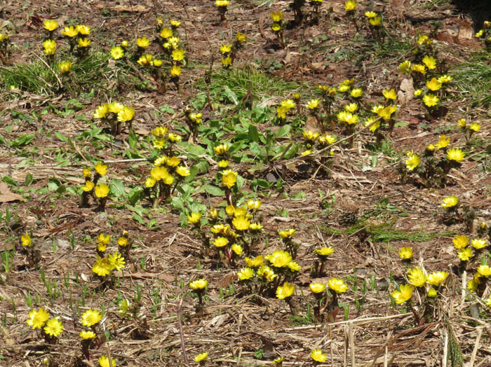 雪の厚いところまで、そっと踏み込んで近づき、芽をつぶさないように写真を撮ってきた。まだ雪が溶けたばかりのところは白い芽が立ち上がっている。その中から花が開き、緑の葉が展開してくるのだろう。