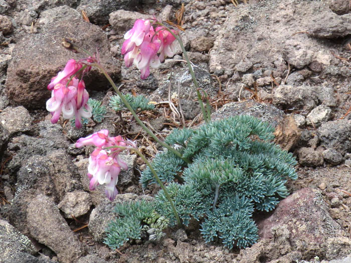 雨の量が多かったせいか、少し潤っているような湿原にはサギスゲが揺れている。アヤメやノハナショウブの紫が綺麗だ。だんだん陽が高くなって来て、湿原も暑い。汗を拭きながら森の中を登って、三方ヶ峰に出ると急に人が多くなる。狭い山頂がいっぱいなのは、ここがコマクサ群生地だから。最盛期は過ぎて、すでに散り始めているが、それでもまだあちらこちらにピンクの花が見えている。