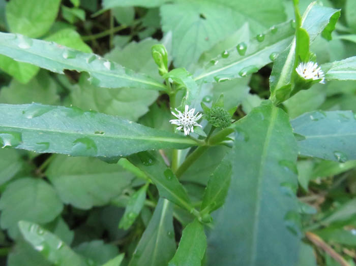 足元に気をつけながら御所川まで降りる。川沿いにジュズダマがたくさん揺れている。田の畔に女性が二人話しながらメモをとっている。近づいて挨拶すると、二人はこの地域の花に詳しいようだ。私たちが見たいと思っている花については今期まだ見ていないので「今ここに」と言えないそうだが、代わりにタコノアシを教えてもらった。世界に1属2種といわれる植物で他に同じような植物がないそうだ。河川域や湿地などに生息するが、他の植物に追われて生息域が狭まっている。蛸の足のように花穂が分かれて、先端が丸まっている。しかも小さな花は吸盤のようについているのが面白い。