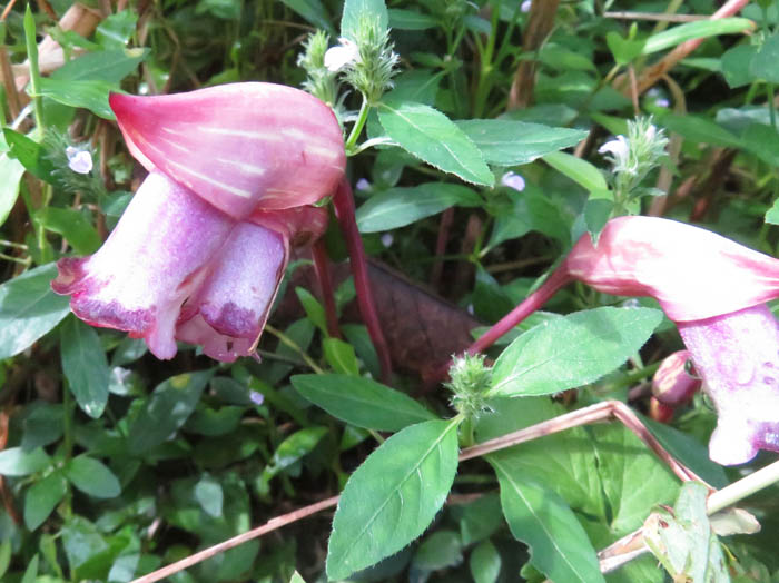 小さな花々を見ながらもう一度稜線に登っていく。小竹ヶ谷を通って、富士が見えるという高みに登る。丹沢の裾野あたりは見えているが、富士の山頂は雲に隠れている。笹のトンネルを通り、七里ヶ浜入口に向かう。とうとう、今日は目指す花を見ることができなかった。