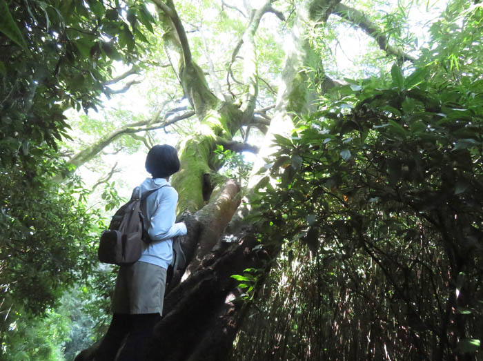 さらに進むと、登り道になる。巨木もあり、暑い日差しは遮られている。風が吹けば言うことなし。