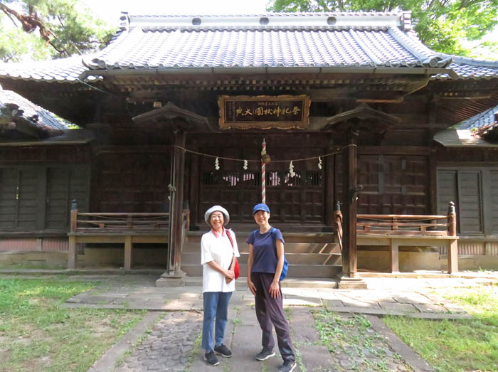 さて、暑い夏を越えて、秋口に入った城山にはどんな花が咲いているだろう。私たちは新しくできた神社庁から県社に登った。この神社の名称はとても長くてしかも漢字ばかりで分かりにくい。大きな社名の看板が立っている。以前孫と登った時にその読み方を調べた(※)が、記憶に残っているだろうか。看板を睨み、首を捻りながらもなんとか思い出すことができた。標高差はわずかだけれど、県社の稜線から長野市街地を見下ろすことができる。後輩は「わぁ〜すごい」と喜んでいる。